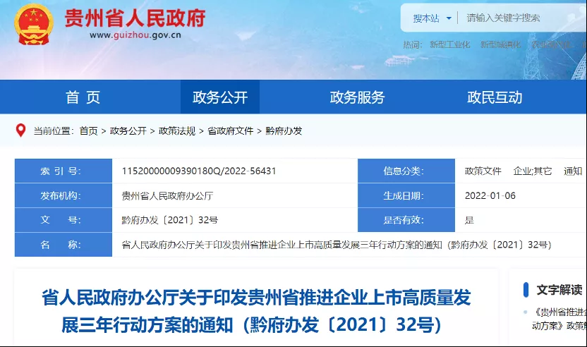 4、贵州省人民政府办公厅关于印发贵州省推进企业上市高质量发展三年行动方案的通知 |