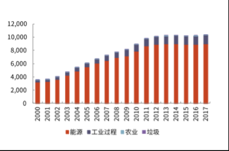 图2 我国温室气体排放(按大类行业)