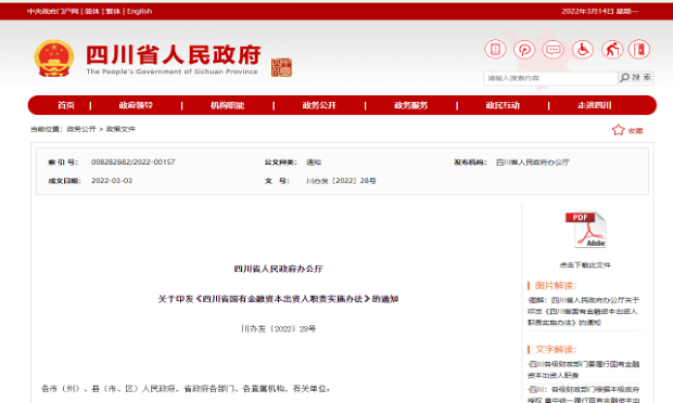 2、《四川省国有金融资本出资人职责实施办法》的通知 |