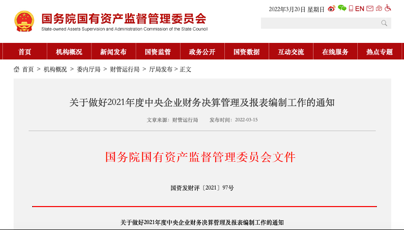 1、关于做好2021年度中央企业财务决算管理及报表编制工作的通知