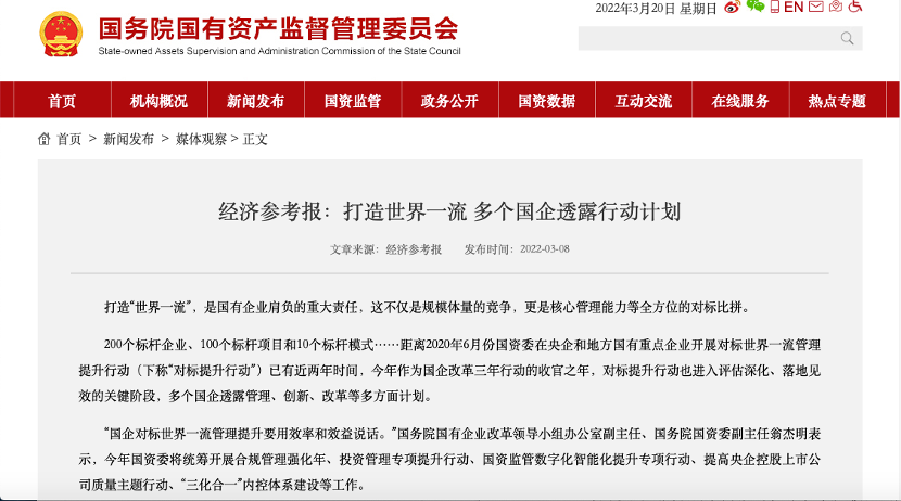 3、经济参考报:打造世界一流 多个国企透露行动计划