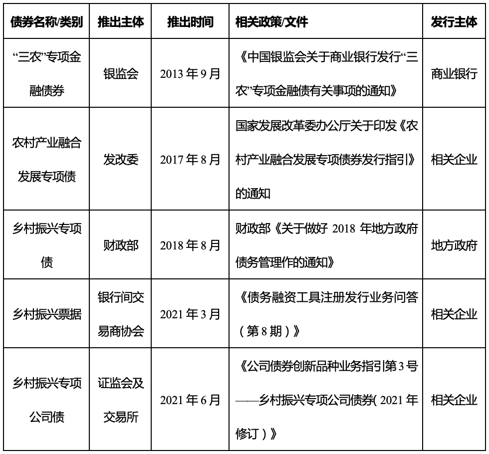 各类乡村振兴债详解