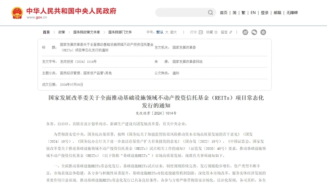 作者/ 李伟 2024年7月26日,《国家发展改革委关于全面推动基础设施领域不动产投资信托基金(REITs)项目常态化发行的通知》(发改投资〔2024〕1014号)正式发布,标志我国基础设施REITs从试点阶段正式进入常态化发行的新阶段。如何抢抓政策...