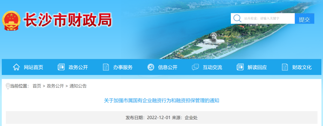 12月1日,长沙市财政局公布《关于加强市属国有企业融资行为和融资担保管理的通知》(长国资产权〔2022〕133 号)。通知旨在为加强市属国有企业融资行为管理,进一步规范融资担保管理,防范和控制融资风险,促进企业合理选择融资方式、拓展融资渠道、降低融资成本,维护...