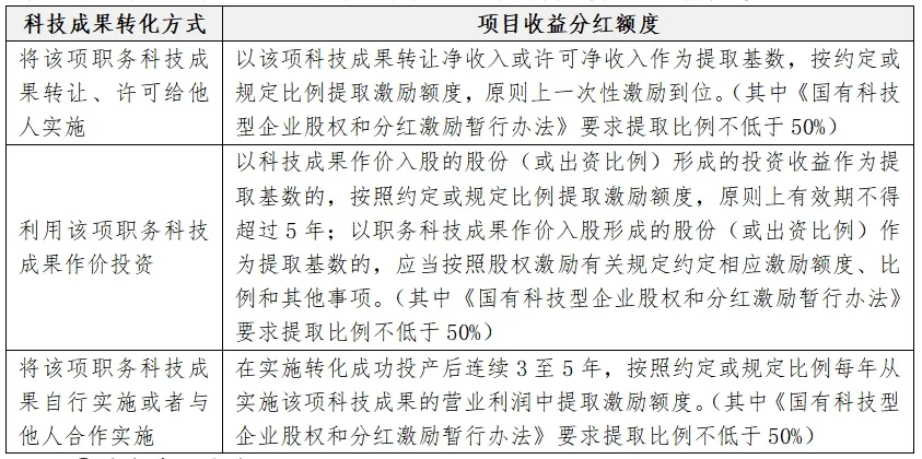 此外,根据《中央科技型企业实施分红激励工作指引》要求,在分配过程中“对于关键科研任务、重大开发项目、主导产品或核心技术的主要完成人、负责人等可以适当提高分配比例”。
