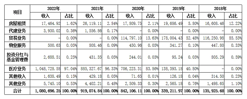 2022年度A集团实现营业收入108.07亿元,其中医疗业务收入占比达97.04%,毛利率25.46%,盈利能力较好且稳定。