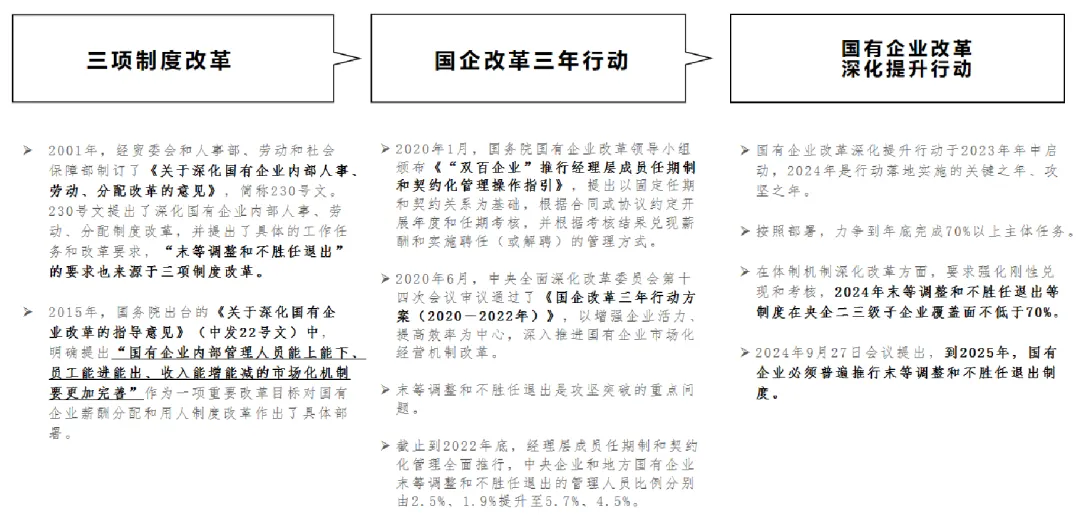 2024年国资委专题会议提出,到2025年,国有企业必须普遍推行末等调整和不胜任退出制度。