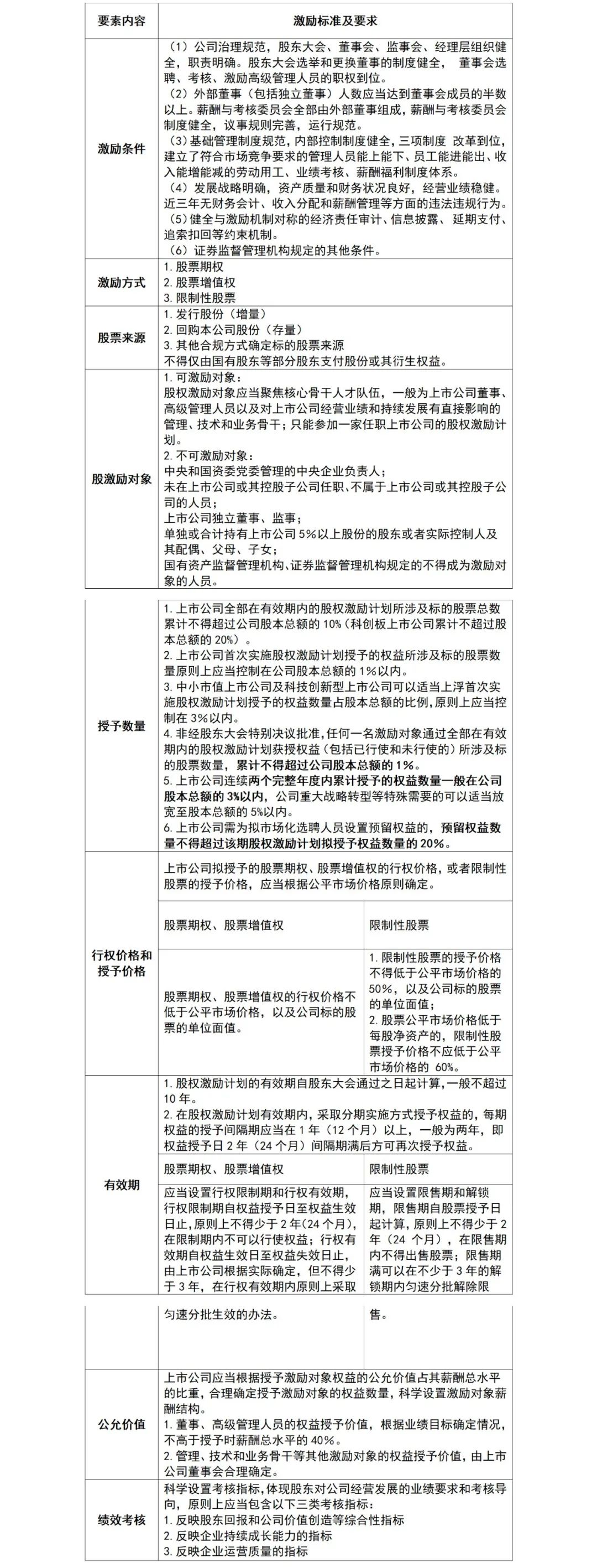 表:国有控股上市公司股权激励标准及要求