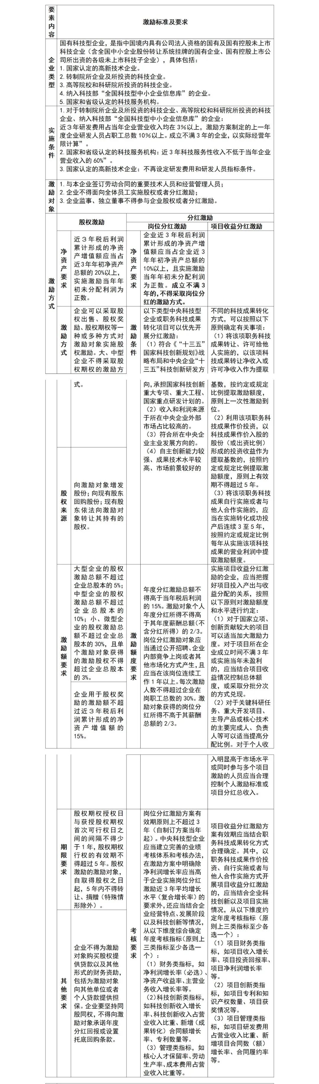 表:国有科技型企业股权和分红激励标准及要求