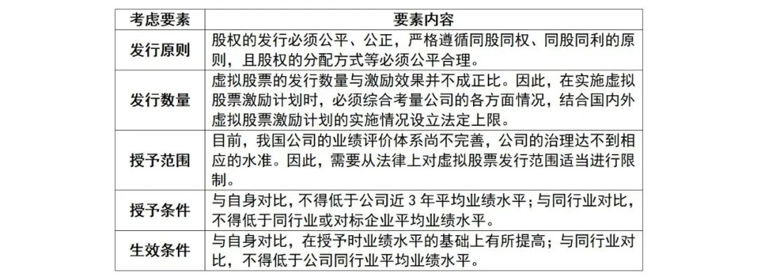 表:虚拟股票激励相关建议