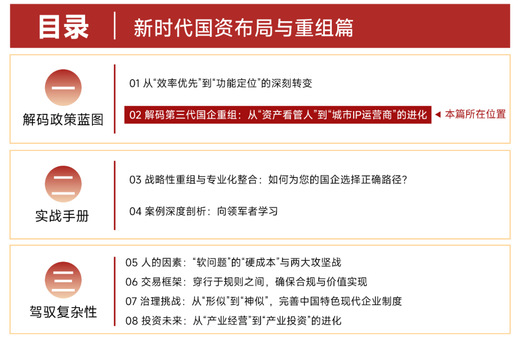 南京卓远特推出“新时代国资布局与重组”专栏, 聚焦改革痛点与实战需求,精心策划3部分10篇原创文章,从“解码政策蓝图”、“实践手册”、“驾驭复杂性”三个部分系统解读政策逻辑、剖析实践路径、提炼方法论工具等,旨在为国有企业提供从战略到落地的全景式指南。