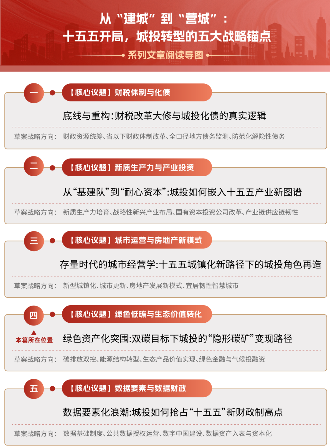 真正有前瞻性的城投,不会把绿色低碳仅仅理解为约束,也不会把生态治理仅仅当作任务,而是会尽快完成一个关键跃迁:从“为了合规做绿色”,转向“为了经营组织绿色”;从“被动承担环保支出”,转向“主动开发隐形碳矿”。“十五五”时期,城投能否把绿色做成资产,决定的不只是单个项目的盈亏,更可能决定下一轮平台转型的上限。