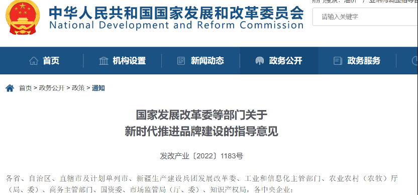 8月25日,国家发改委、工信部、国务院国资委等七部委印发了《关于新时代推进品牌建设的指导意见》(以下简称“意见”),提出开展中国品牌创建行动,推动中国制造向中国创造转变、中国速度向中国质量转变、中国产品向中国品牌转变。