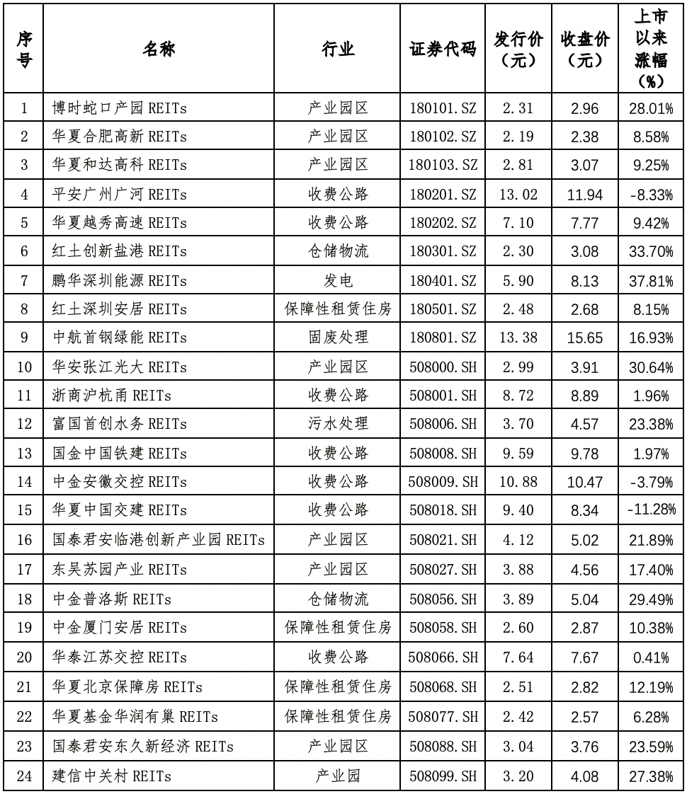 2、24只公募REITs市场表现(截止1月4日)