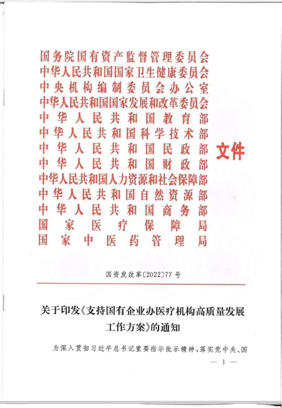 1、《支持国有企业办医疗机构高质量发展工作方案》 |