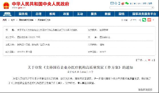 1、《支持国有企业办医疗机构高质量发展工作方案》 |