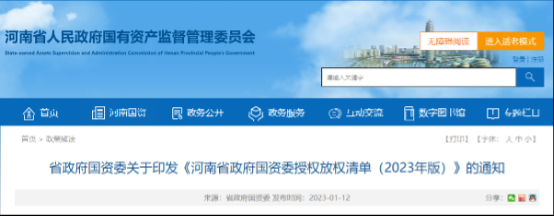 2、《河南省政府国资委授权放权清单(2023年版)》印发 |