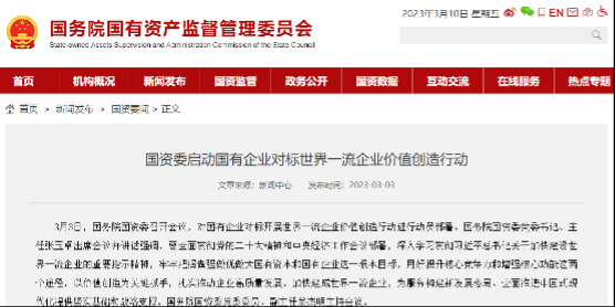 1、国资委启动国有企业对标世界一流企业价值创造行动