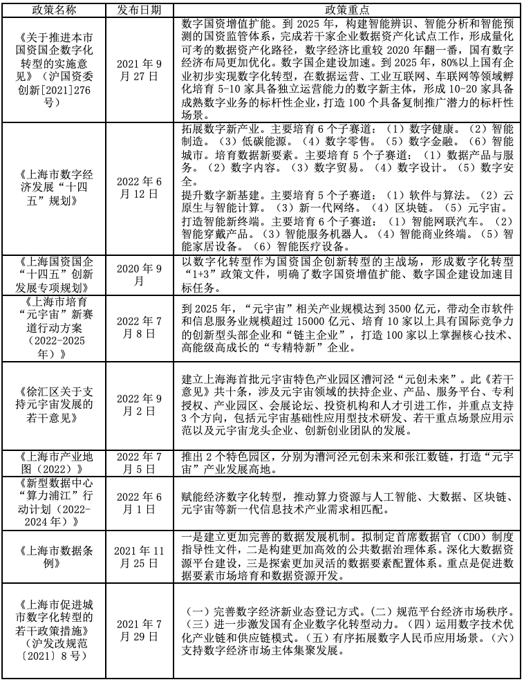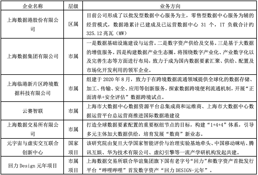 上海正在围绕“经济、生活、治理”三大领域,全面推进城市数字化转型,目前上海产业数字化增加值规模超过1万亿元,占全市生产总值比重超过40%,围绕数字新产业、数据新要素、数字新基建、智能新终端等重点领域,加强数据、技术、企业、空间载体等关键要素协同联动。上海国资则在数字资产,数据跨境便利流通机制及跨境试点,数据交易流通制度,公共数据与社会数据流通渠道,公共数据开放共享及应用场景授权机制,长三角数据共享,国家数据综合授权和属地返还的共享效率等多个方面展开布局,尤其是上海数据集团成立后承担了上海市公共数据和国企数据的授权运营,与大数据中心和数据交易所形成上海数据要素三驾马车。