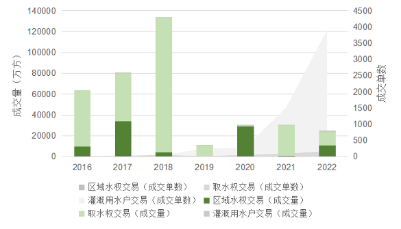 水利部于2022年推出《关于强化流域治理管理的指导意见》和《关于强化流域水资源统一管理工作的意见》等政策文件,提出完善流域用水权市场化交易平台和相关制度,引导推进流域地区间、行业间、用水户间开展多种形式的用水权交易。近期,九部门又联合印发《关于推广合同节水管理的若干措施,提出实施差别化水价政策,鼓励开展用水权交易。汕头、荆州等地区在2022年也陆续将水权交易纳入地方规划和政策文件,常州、南通、合肥等地开始积极尝试开展水权交易,因地制宜地进行探索研究,为地方水权交易的发展奠定基础。截至2022年底,全国大部分省份已经将水权交易纳入城市发展规划、水资源规划等政策中。