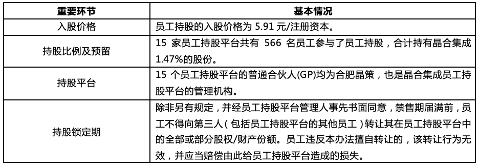 (3)实施员工持股激励,风险利益牢绑定。晶合集成的骨干人员可通过员工持股平台间接持有股份,共认缴了1.31亿元的出资额,持股对象主要是对公司长期发展有重要贡献的核心人员,如总经理、副总经理、财务负责人、董秘等高管,以及分公司厂长、副厂长等经营管理人员;还有核心技术人员、业务骨干等,出资金额从数百万元到数万元不等。晶合集成实施股权激励,有利于形成对核心员工的有效激励与约束,与公司共担风险,从而增强凝聚力,保持公司在技术、管理及市场方面的竞争力。