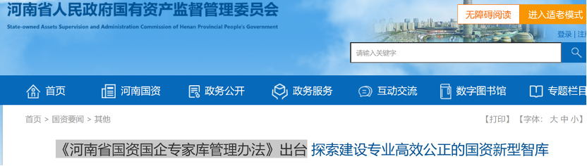 为贯彻落实中央和省委关于深入推进新型智库建设的部署要求,提升思想智库服务决策的能力,10月30日,省政府国资委出台《河南省国资国企专家库管理办法》(以下简称《办法》)。《办法》的出台,为探索建设一个专业、权威的国资国企新型智库打下了坚实基础。