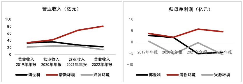图1 清新环境、博世科、兴源环境近四年业绩情况