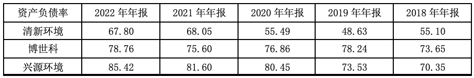 表4 清新环境、博世科、兴源环境资产负债率情况(%)