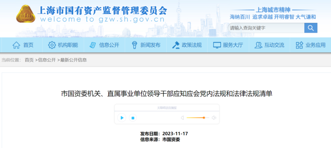 1.上海市国资委印发《市国资委机关、直属事业单位领导干部应知应会党内法规和法律法规清单》 |