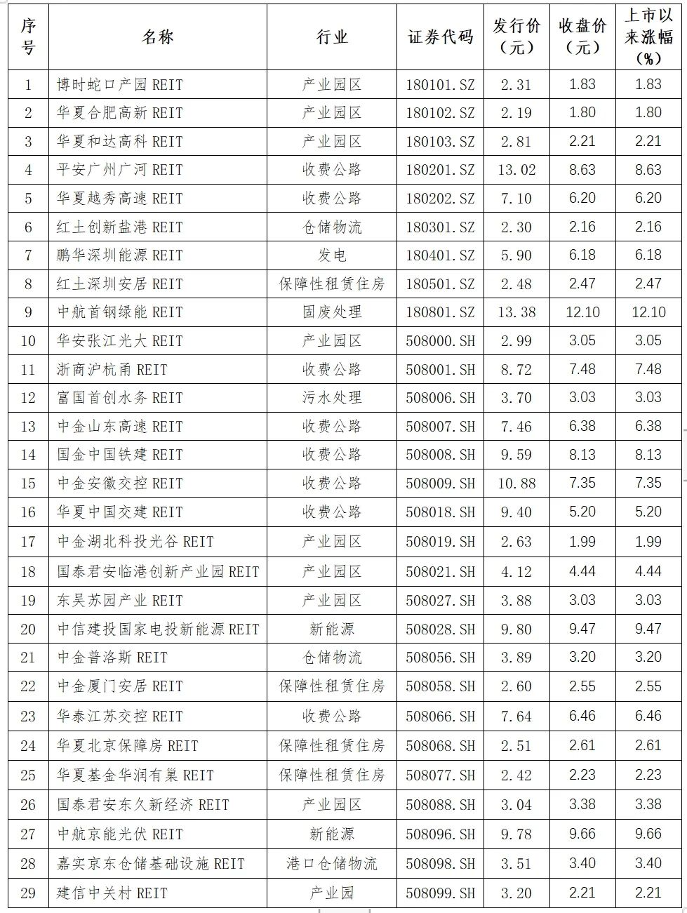 2、29只公募REITs市场表现(截至12月7日)