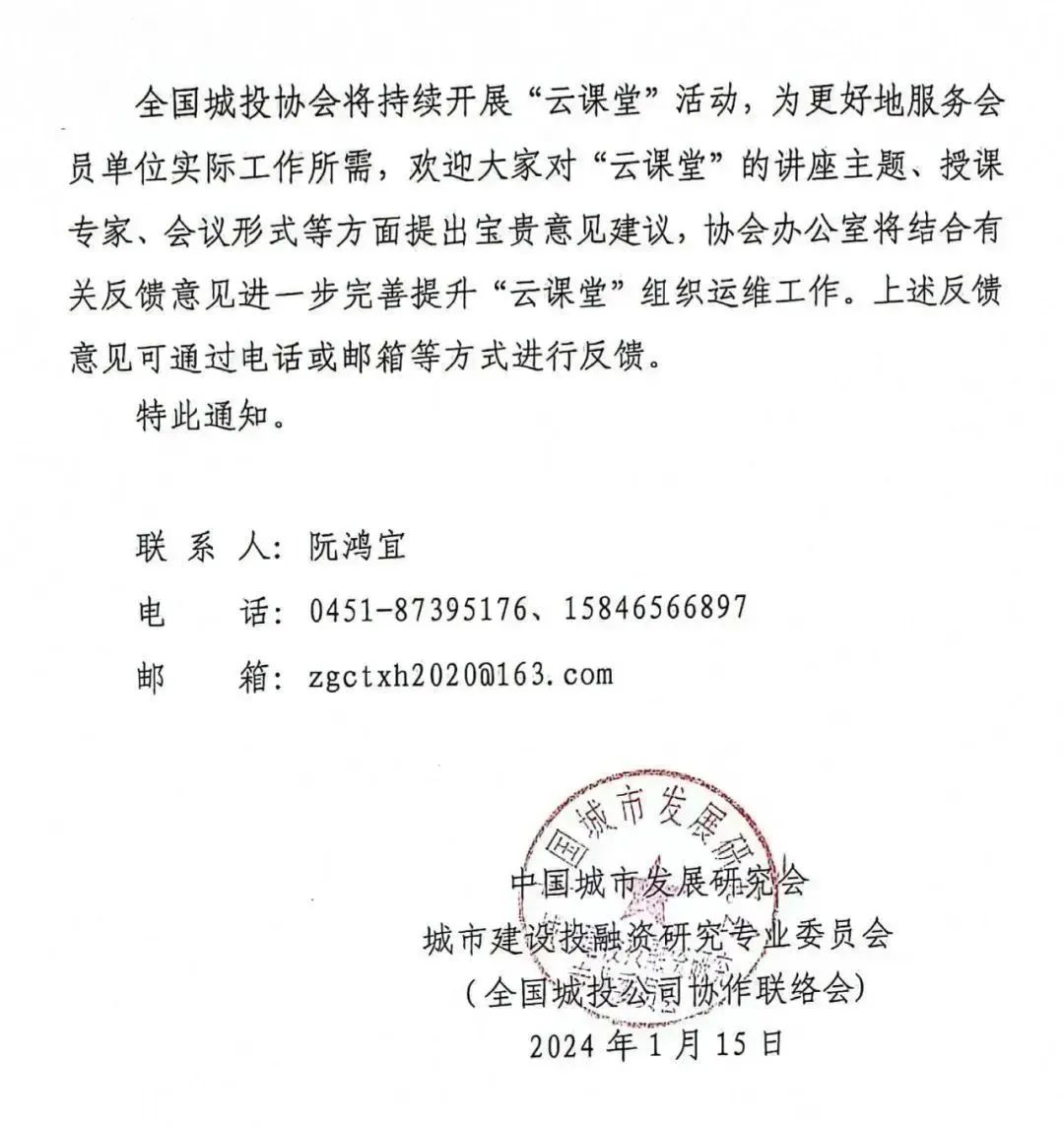 2、关于举办首期全国城投协会云课堂的通知