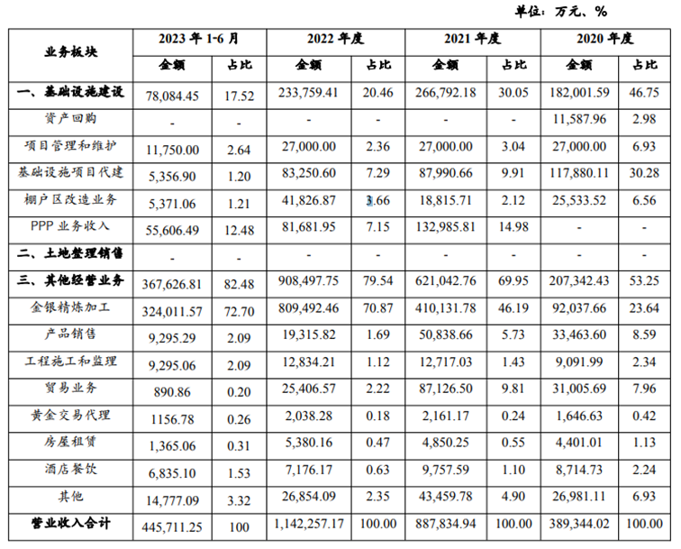 三门峡市投资集团有限公司(简称“三门峡市投资集团”,AA+)成立于2011年,初期由于实际运营方向与战略定位存在偏差,偏重传统基础设施建设而未能引导产业结构优化升级,存在造血能力差、净利润有限等诸多问题。对此,三门峡市投资集团于2017年6月开始进行全面重组整合,由三门峡财投、市政府先后向三门峡市投资集团划转注入三门峡农投、龙腾置业、路桥建设、三门峡金渠、陕州财经、渑池投资、天鹅城酒店、三门峡保税物流、天鹅旅发等股权。通过资产及股权划转,三门峡市投资集团丰富了各类经营性业务,打造出多元化资产构成和收入构成。目前,三门峡市投资集团基础设施建设等城建类业务占比逐步下降,以金银精炼加工为主的其他经营业务占比已达到80%。