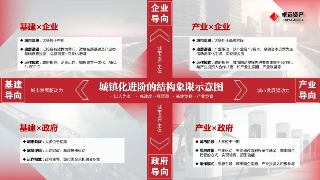 按照波特城市发展的4阶段理论,城市发展经过要素驱动、投资驱动、创新驱动、财富驱动四个阶段。之前的20年中国处在第二阶段,经历了政府和企业共同发力的基建、房地产(土地财政)为主的投资驱动,这个过程中形成了城投的“基建x企业”模式。