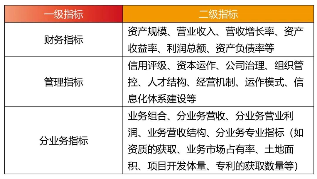 “十四五”规划是中期评估的基础,结合企业发展情况与标杆研究,提炼中期评估指标。例如,在实施南京交通投资置业公司评估项目中,采用的评估指标包括财务指标、管理指标、分业务指标等,并结合原规划进行具体指标分解(如表1所示),从总体经营情况、业务发展情况、关键任务完成情况等多个维度分析评估企业“十四五”规划中期目标推进进度。