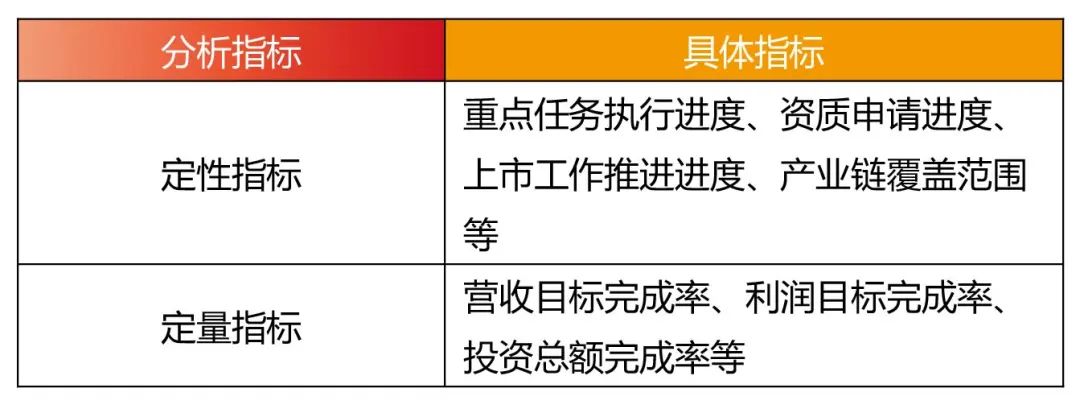 根据评估指标,全面收集企业内部基础数据,包括企业评级报告、企业财务报告、年度经营情况及下年度经营计划、人员信息表、项目投资计划及进度情况说明等,为规划评估奠定基础。例如,在实施南京铁路建设投资公司“十四五”规划中期评估项目中,通过定性分析与定量分析相结合的方式,对比评估规划目标执行情况(如表2所示),其中,定性指标侧重评估进度与水平,如重点任务执行进度、资质申请进度、上市工作推进进度、产业链覆盖范围等,量化指标侧总评估完成率,如营收目标完成率、利润目标完成率、投资总额完成率等,同时借助对标企业研究找出差距,分析规划执行过程中存在的问题及原因,进一步提出优化策略与改进措施。