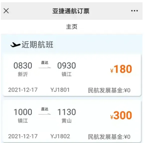 而从新沂机场搭乘短途航线只需要1.5小时,票价300元,可通过亚捷航空官方微信公众号、携程旅行APP、同程旅行APP、航旅纵横APP购买。