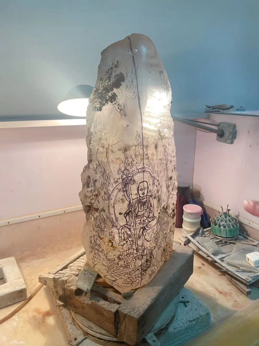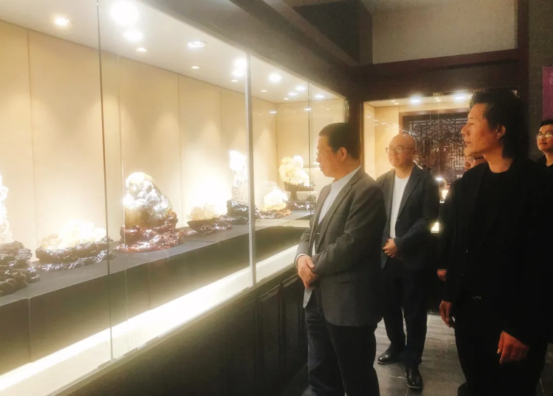 调研组首先来到水晶文化创意产业园,参观大师工作坊。工作室里面汇聚了来自墨西哥、巴西等全球的精品水晶,在艺术大师的精雕细琢下成为一个个价值不菲的水晶艺术品。这里也体现了东海水晶的全球产业网络布局,东海县已经实现了“买全球、卖全球”国内国际两种资源、两个市场的互通。年进口水晶原石总量超4万吨,总价值近35亿元,致力于打造具有全球影响力的水晶珠宝交易中心。