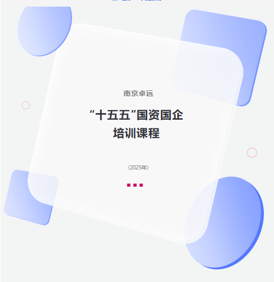 在此背景下,人才作为企业发展的核心驱动力,其储备与培养已成为国资国企突破瓶颈、实现跨越式发展的关键。国资国企不仅需要具备战略眼光的管理人才,还需要在产业研究、投融资、市场化运营等领域具备实战能力的专业人才。基于此,南京卓远推出“十五五”国资国企培训课程体系,从顶层逻辑、业务发展、产业研究、投融资实务、内部管理、定制主题等方面全面落实国企深化改革部署,助力国资国企统筹谋划,加强高质量人才培养,推进企业高质量发展。