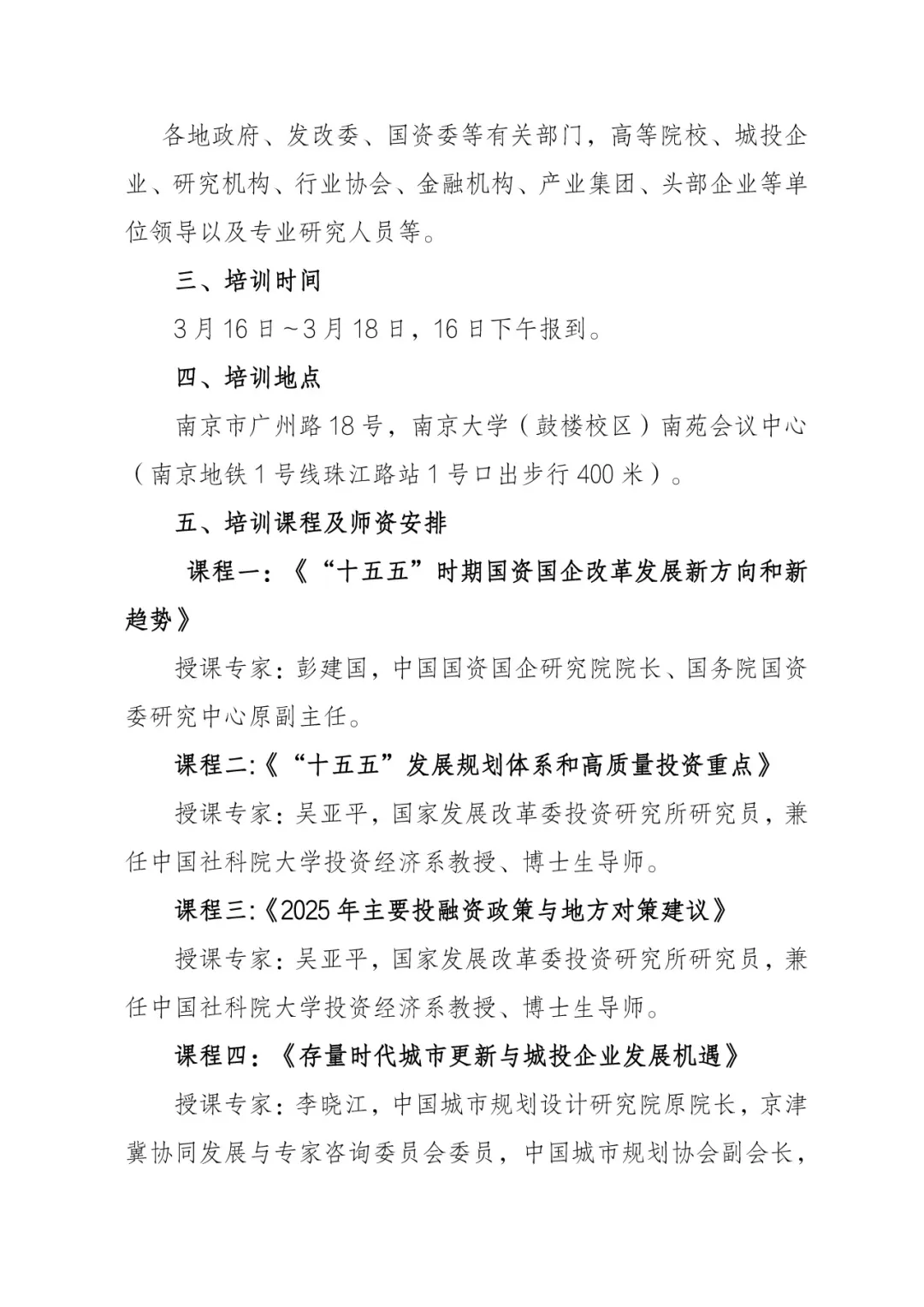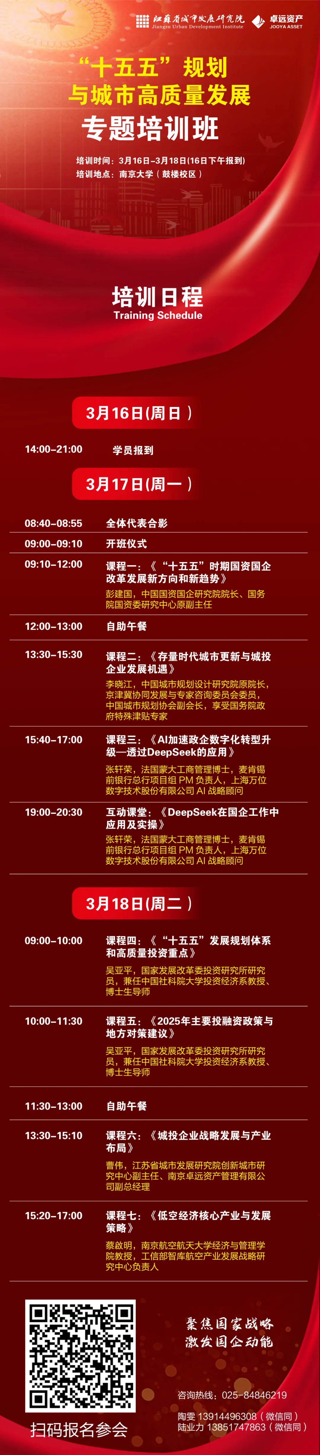 本次培训将立足国家战略导向与地方实践需求,聚焦“十五五”时期国资国企高质量发展的核心命题,通过“宏观政策解读+中观路径设计+微观实操赋能”三位一体课程体系,助力各单位把握“十五五”期间宏观趋势、聚焦城市发展、激发国企动能、强化实操能力,进一步推动各地经济社会与城市高质量发展。
