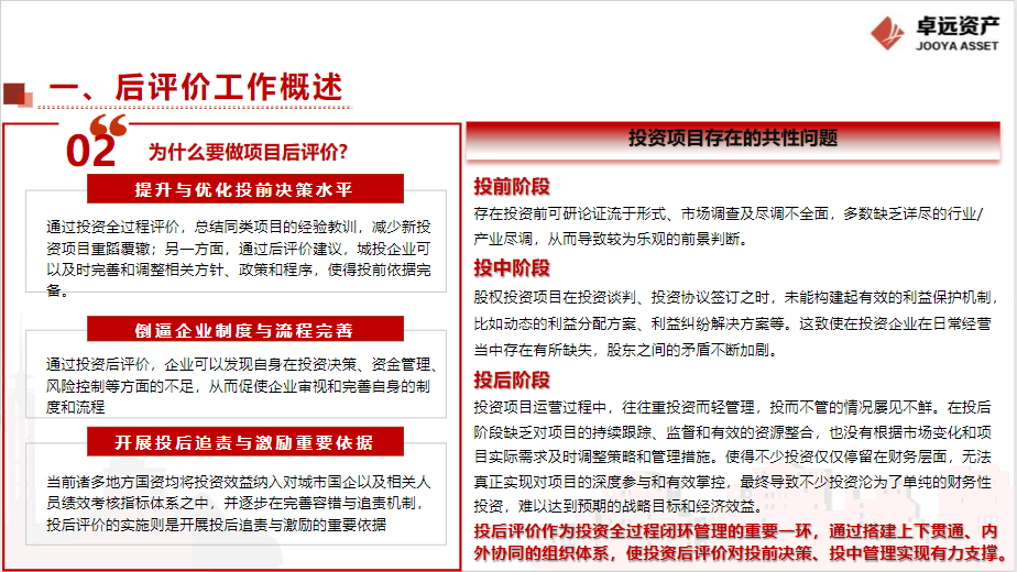 本次培训从投资管理和投后评价工作两个维度出发,系统梳理了各环节的常见问题,并提出具有实操性的改进建议,助力企业提升投资管理效能与后评价质量提升。