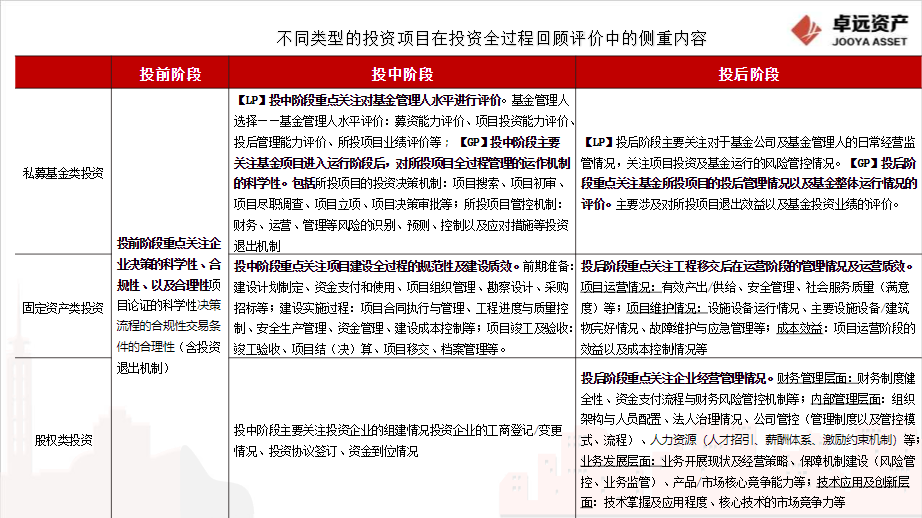 从投资全过程管理的全流程出发,对“投资全过程评价”、“投资效益分析”、“可持续能力评价”等后评价的核心内容进行具体分析,重点对私募基金类投资、固定资产类投资、股权类投资等不同类型的投资项目在投资全过程回顾评价中的侧重内容进行具体分析。