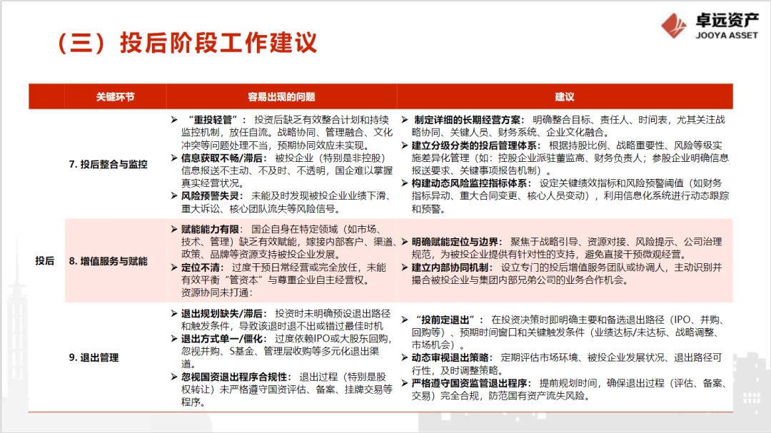 四、投资管理及后评价工作建议