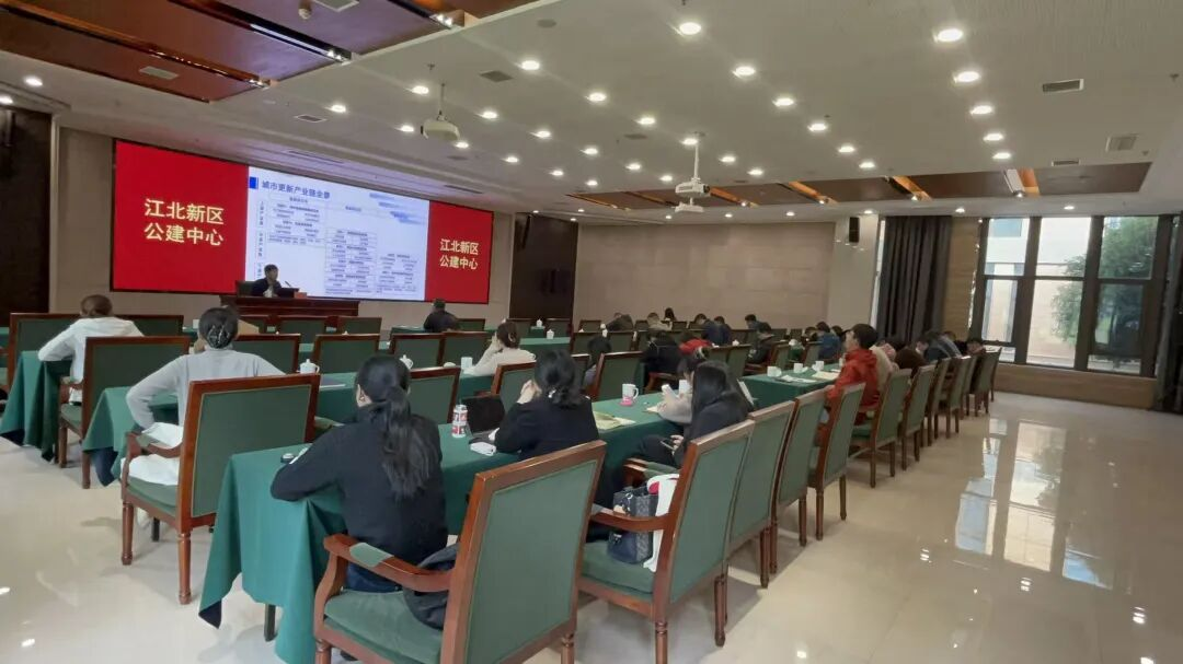 当前位置 : 首页 》新闻咨询讯 》公司动态 为深入贯彻党的二十届四中全会精神,准确把握新发展格局下城市更新的发展方向与实施路径,助力提升城市基础设施与公共服务水平,2025年11月27日,南京卓远资产管理有限公司(以下简称“南京卓远”)应邀为南京江北新区公建中心(以下简称“公建中心”)开展主题为“新发展格局下的城市更新机遇与实施路径”的专题培训。本次培训由南京卓远基建咨询部负责人费丹旦主讲,公建中心全体干部职工参加学习。