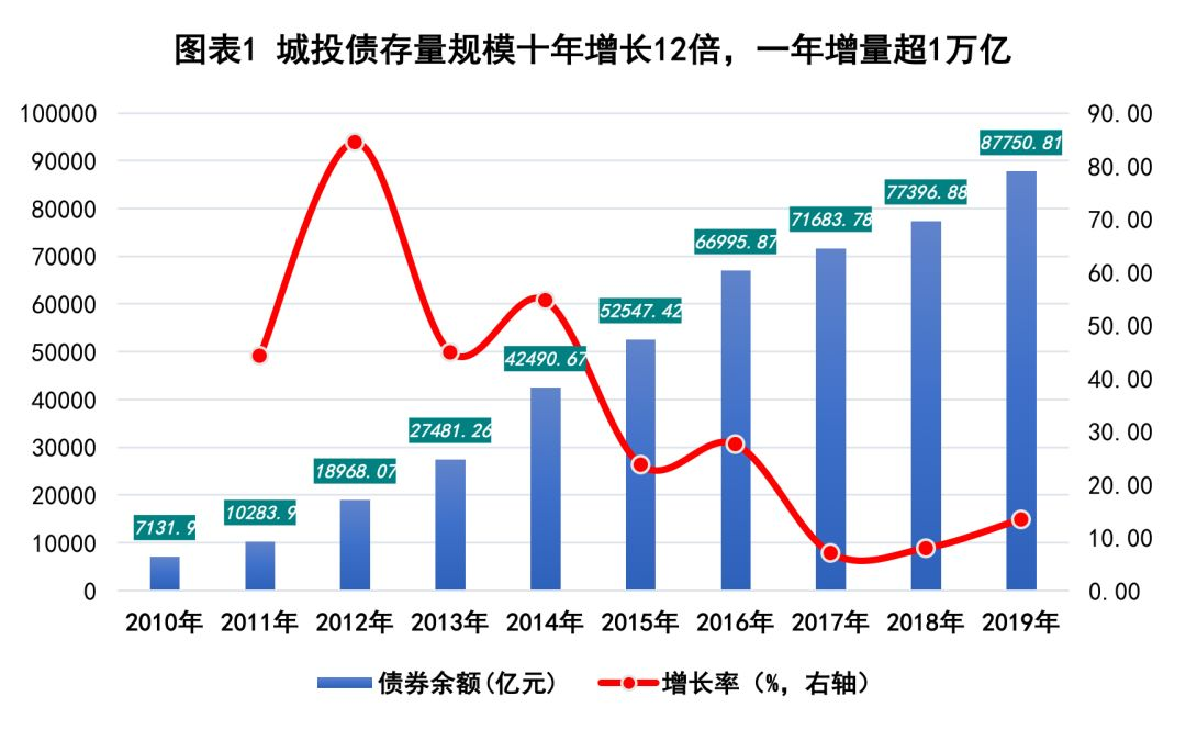 近十年,城投债实现了飞速发展,规模迅速增大。截至2019年12月31日,市场存量城投债规模达87750.81亿元,是2010年同期的12倍(2010年末规模为7131.9亿元),比2018年同期增长1万亿元,增长13.38%(2010年末规模为77396.88亿元)。本文对2019年度城投债发行情况进行总结回顾,并对2020年进行展望。