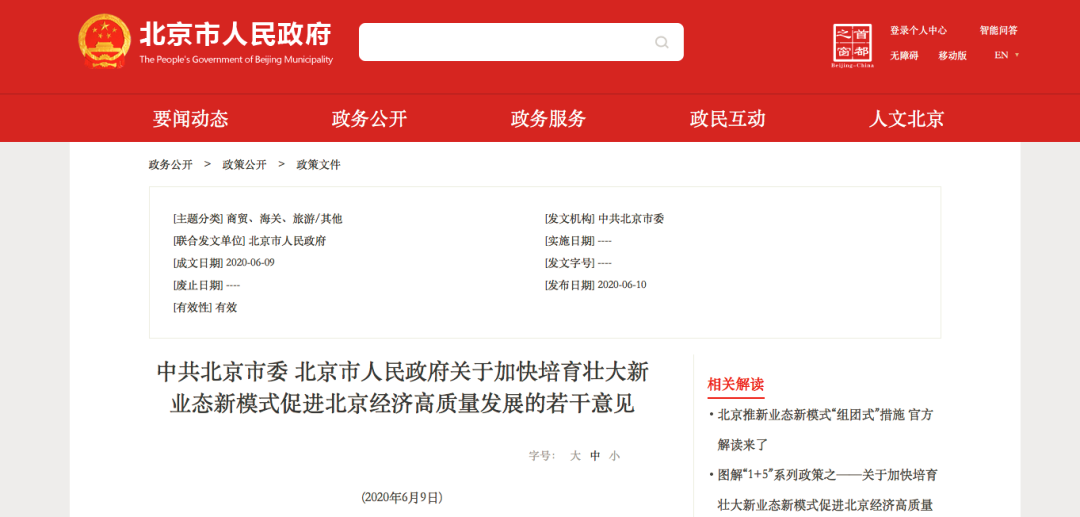 1、中共北京市委 北京市人民政府关于加快培育壮大新业态新模式促进北京经济高质量发展的若干意见