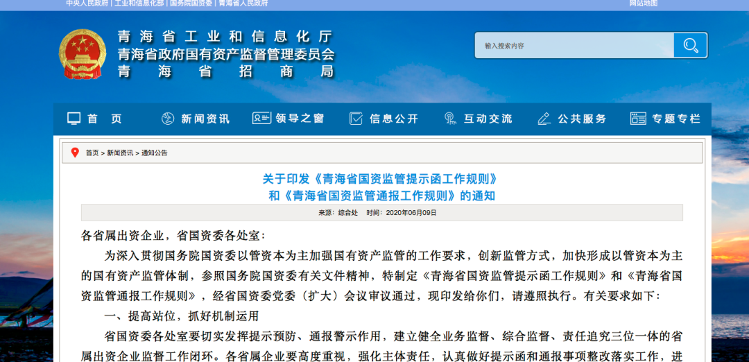 2、青海省国资委印发《青海省国资监管提示函工作规则》和《青海省国资监管通报工作规则》
