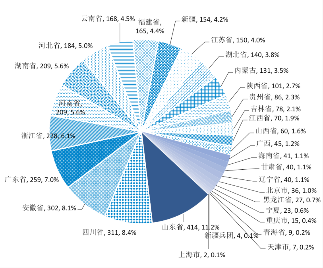 图1-2 截止2019年未各地开工项目数及其占落地项目数比例[1]