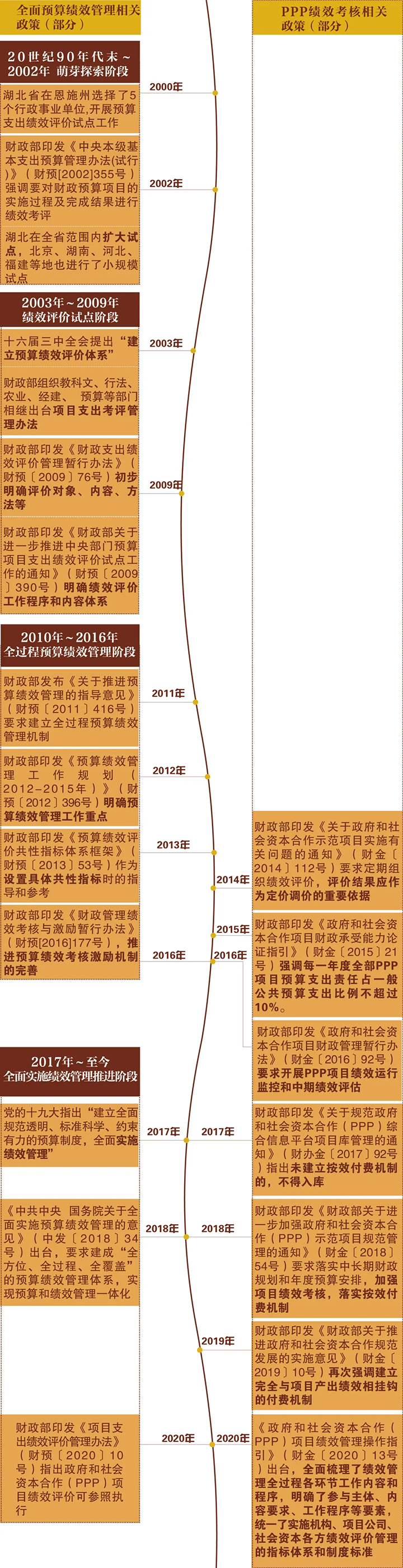 本文通过对财政预算绩效管理政策和PPP项目绩效规范进程进行对比梳理,探索我国预算绩效管理改革的发展历程,探求PPP项目绩效管理的本源。