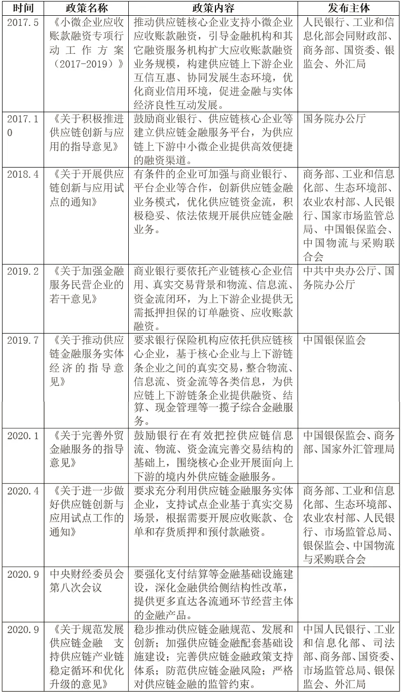 表1:近三年推进供应链金融发展的政策、意见