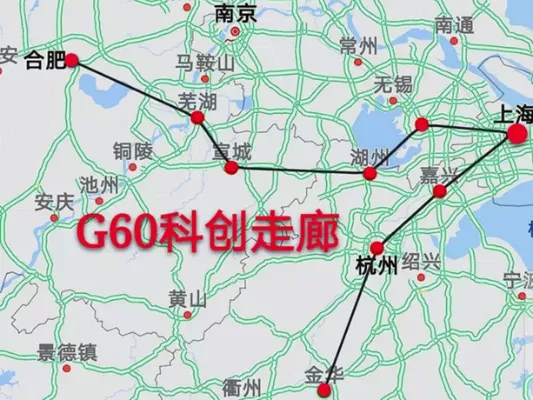 其中G60科创走廊也被写入《长江三角洲区域一体化发展规划纲要》,上升为长三角一体化发展国家战略的重要组成部分,要求“持续有序推进G60科创走廊建设,打造科技和制度创新双轮驱动、产业和城市一体化发展的先行先试走廊”;并提出目标“到2025年,长三角G60科创走廊建设科创驱动‘中国制造’迈向‘中国创造’的示范走廊迈出实质性步伐”。G60科创走廊以上海松江枢纽为起点,依托G60高速公路和正在建设的沪苏湖高铁这两个交通大通道延伸出两条线,一条串联起嘉兴、杭州、金华,另一条串联起苏州、湖州、宣城、芜湖、合肥等城市,通过集聚科创资源、科创人才等要素打造科创产业集群。而G42高端智能制造业走廊基本沿着G42高速公路,起于上海,经过苏州、无锡、常州、镇江、南京,并延伸到安徽与皖江经济带衔接,重点发展高端制造和智能制造。